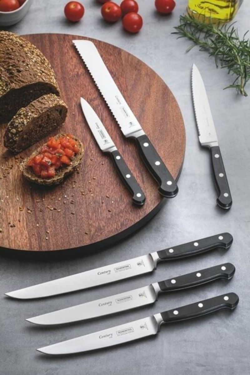 - As facas Century possuem lâmina de aço inox DIN 1.4110 forjada em uma só peça (monobloco) garantindo a resistência e a durabilidade do produto. O nível de dureza de 55HRC a 58HRC é obtida através de um moderno sistema de têmpera que proporciona um fio durável e preciso.