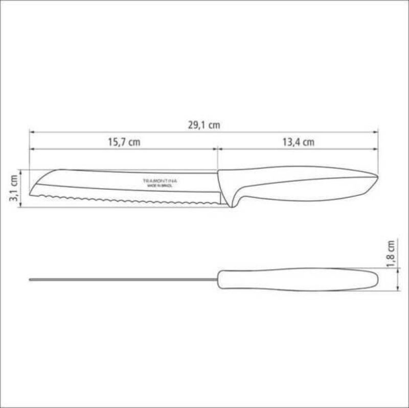 Seja com um pão quentinho da padaria ou um saindo direto do forno da sua cozinha, a Faca para Pão Tramontina Plenus com Lâmina em Aço Inox e Cabo de Polipropileno Cinza 7 polegadas da Linha Plenus está sempre por perto para te auxiliar. Desenvolvida para cortar diferentes tipos de pães sem amassá-los, ela traz mais praticidade e conforto para o dia a dia.Recomendações de Uso:- Antes da primeira utilização, lave bem a peça e seque-a.