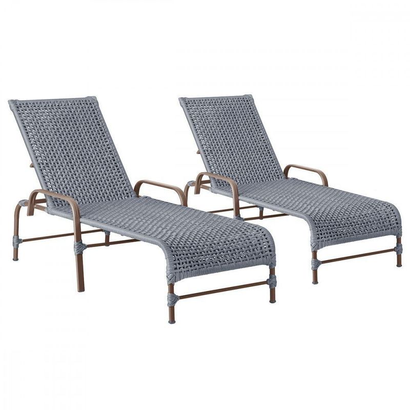 02 Espreguiçadeiras Reclinável Catar Marrom Corda Náutica Prata
