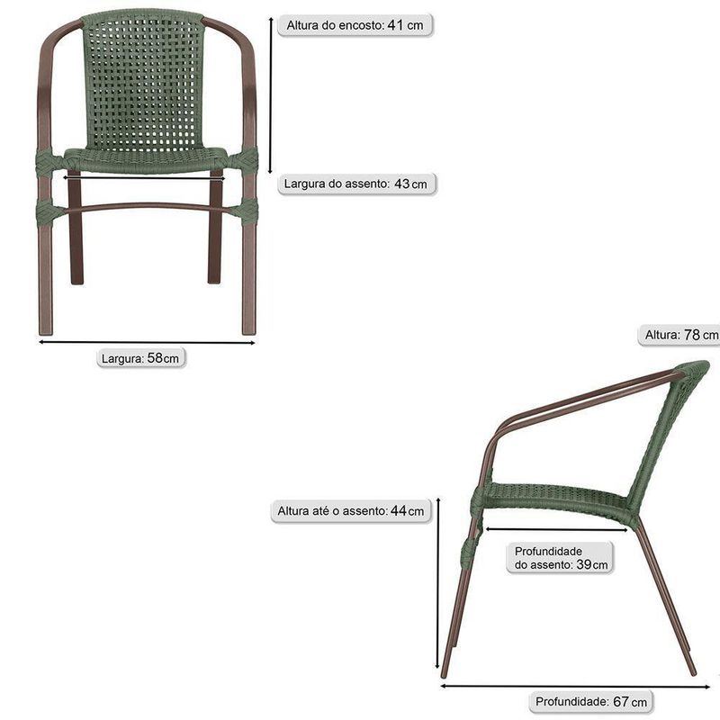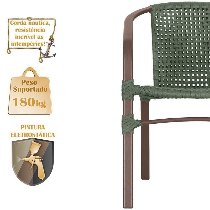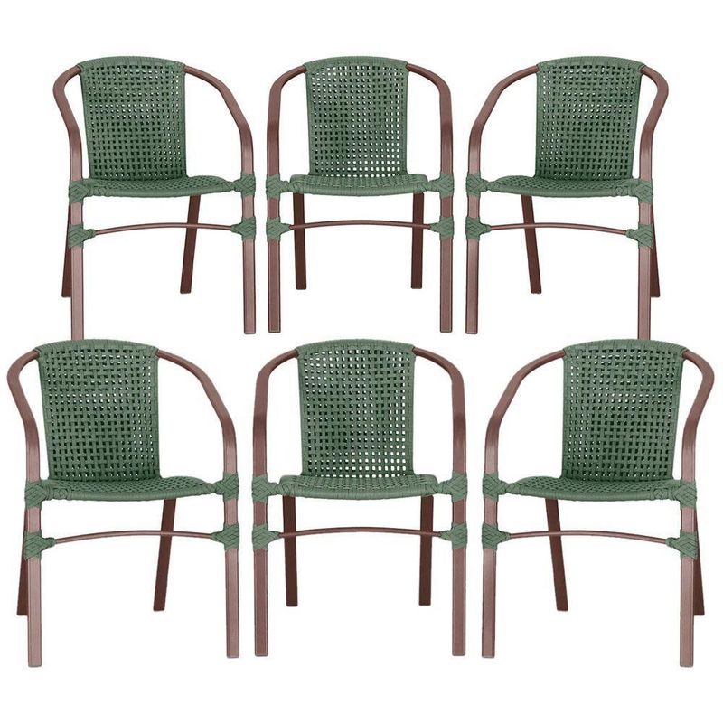 06 Cadeiras Floripa Alumínio Pintura Marrom Corda Nautica Tr Verde