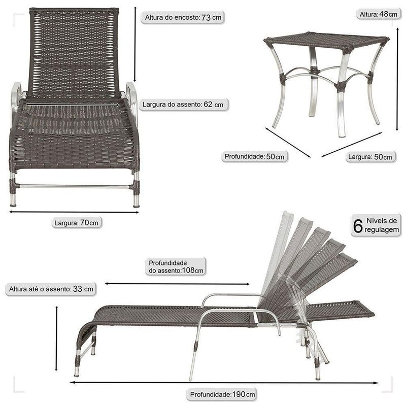 1 Espreguiçadeira Catar E 1 Mesa Garden Alumínio E Fibra Tabaco