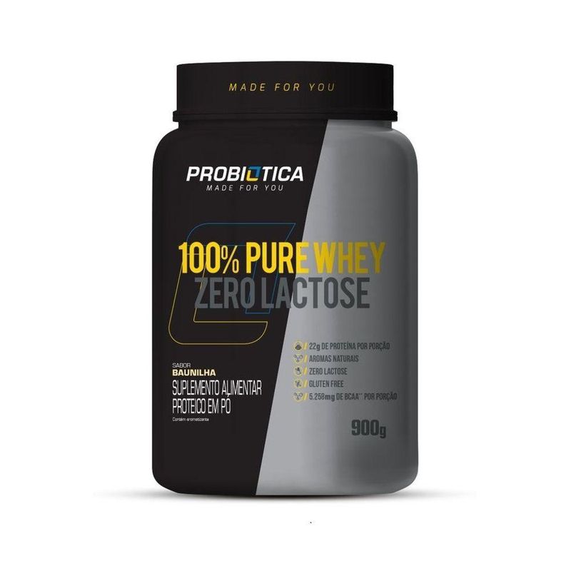 100% PURE WHEY SEM LACTOSE (900g) - PROBIÓTICA O 100% Pure Whey Sem Lactose (900g) da Probiótica contém a WPC sem lactose, uma proteína concentrada do soro do leite com tecnologia que garante a ausência de lactose no produto, podendo ser consumida por pessoas com intolerância a esse carboidrato. Além disso, o 100% Pure Whey Zero Lactose conta com aromas e edulcorantes naturais, possui 21g de proteína por porção e os aminoácidos de cadeia ramificada (BCAA, sua sigla em inglês) leucina, isoleucina e valina, fornecendo 4,9g de BCAAs por porção. BENEFÍCIOS: * Contém aromas e edulcorantes naturais;* Possui 21g de proteína;* Zero Lactose;* Isento de glúten;* Possui 4,9g de BCAAs.
