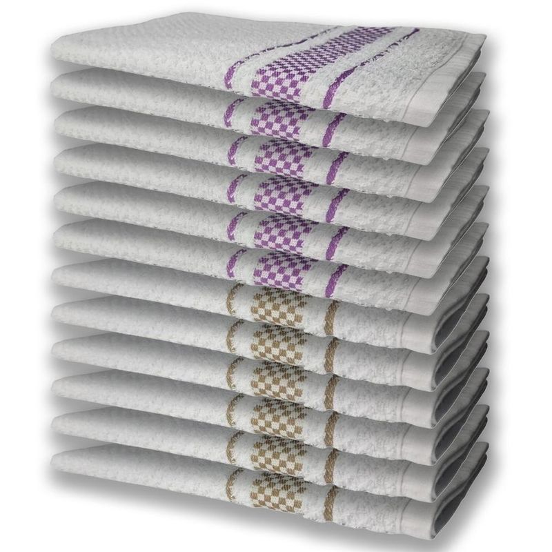 12 Panos De Prato Atoalhado Felpudo Premium 6 Lilás 6 Marrom