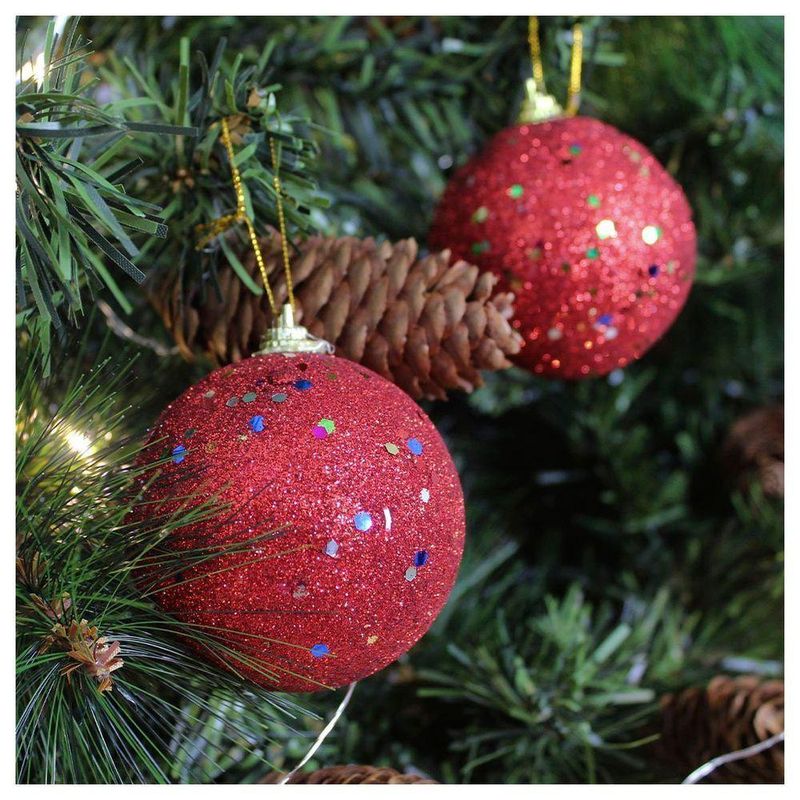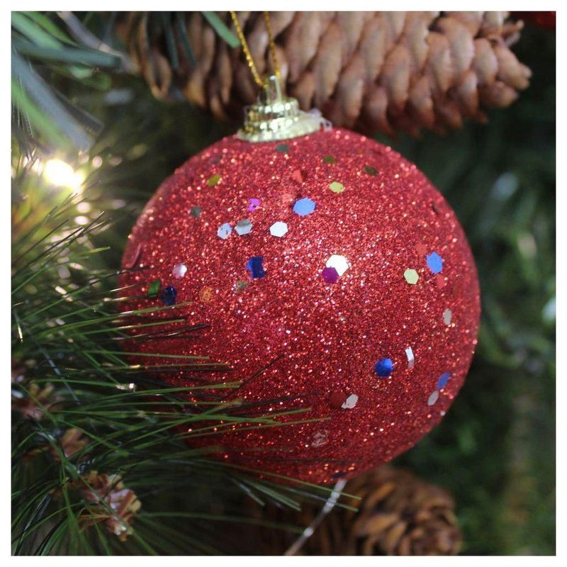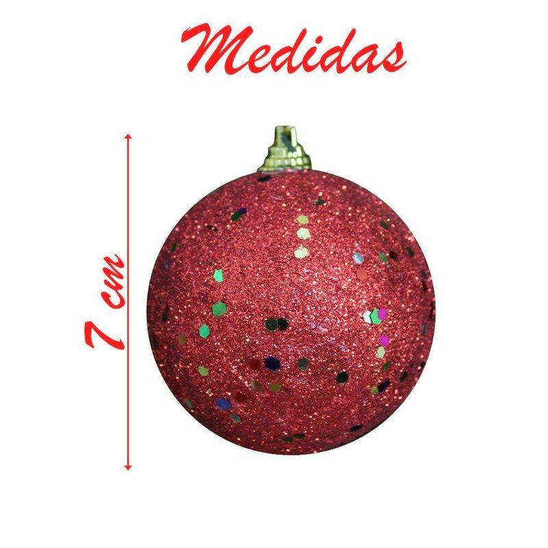 2 Bolas Enfeite Natalino Árvore Natal Vermelho Glitter 70mm -