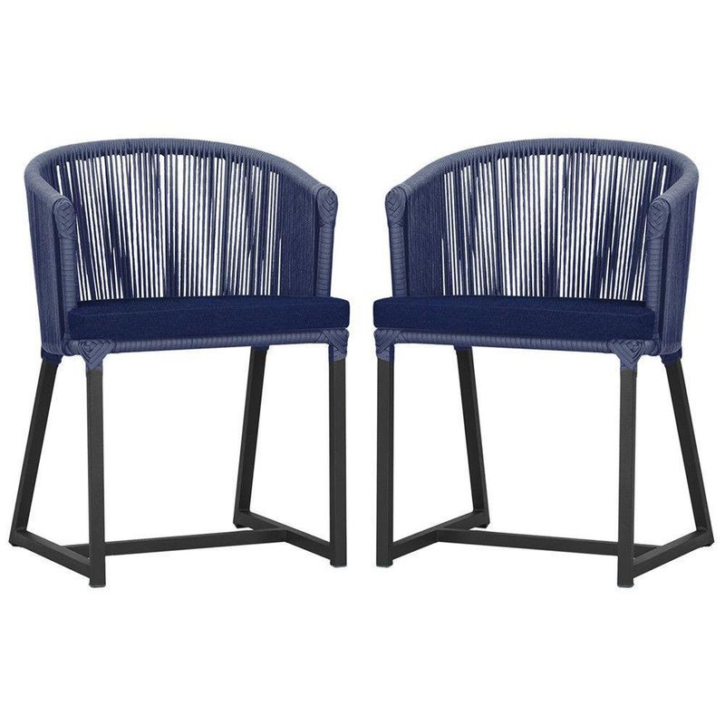 2 Cadeiras De Jantar Noronha Preta Corda Náutica E10 Trama Azul