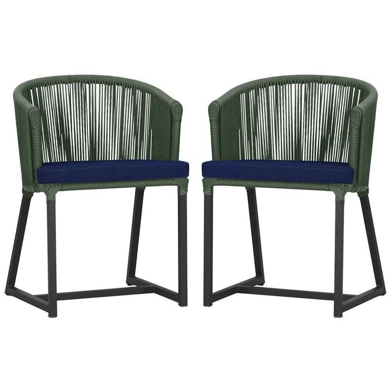 2 Cadeiras De Jantar Noronha Preta Corda Náutica E10 Trama Verde