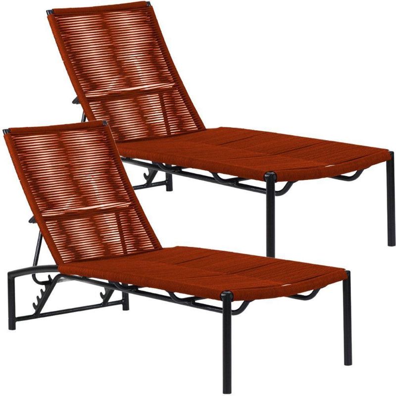 2 Espreguiçadeira Corda Náutica Alumínio Com Regulagem Trama Terra Cota