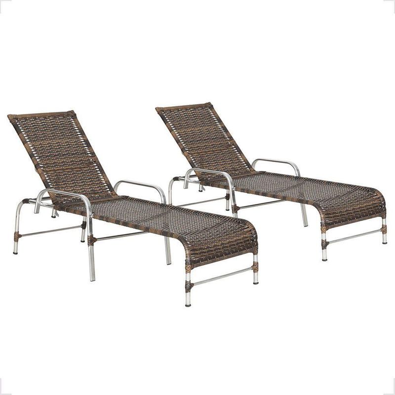 2 Espreguiçadeiras Reclinável Catar, Alumínio Polido E Fibra Argila