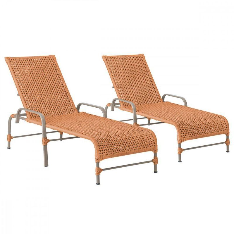 2 Espreguiçadeiras Reclinavel Catar Fendi Trama Terra Cota