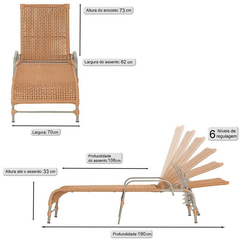 Produto conhecido como: Espreguicadeira reclinavel, Espreguicadeira em aluminio, Espreguicadeira com encosto ajustavel, Espreguicadeira para area externa, Espreguicadeira para piscina, Espreguicadeira resistente ao tempo, Espreguicadeira moderna, Espreguicadeira confortavel, Moveis para area externa, Moveis de aluminio para jardim, Corda nautica para moveis, Espreguicadeira leve e duravel, Design sofisticado para areas externas, Decoracao para varanda e piscina, Espreguicadeira resistente ao sol e chuva.