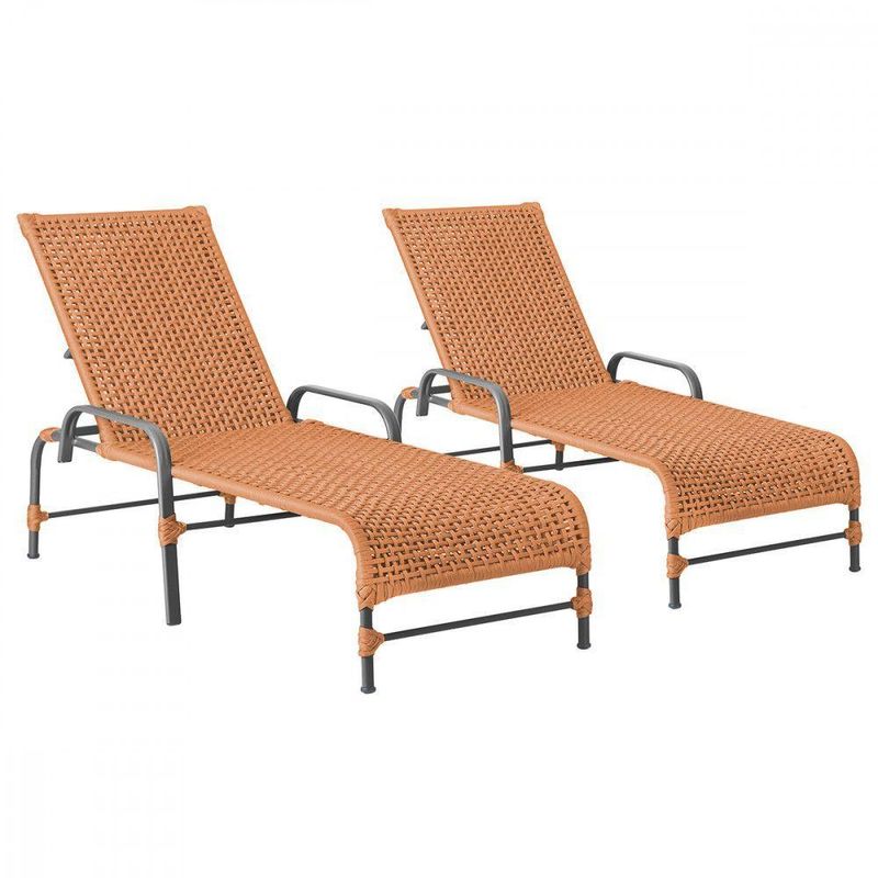 2 Espreguiçadeiras Reclinavel Catar Preto Corda Nautica Terra Cota