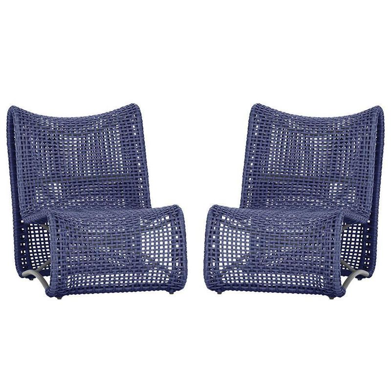 2 Poltronas Texas Em Alumínio Preto Corda Náutica Trama Azul