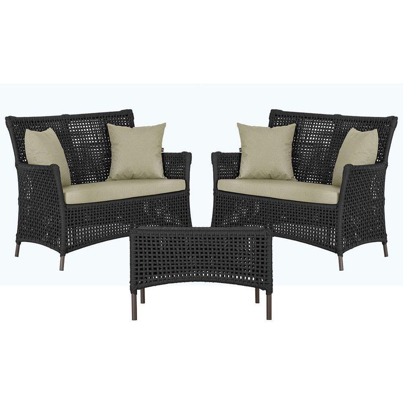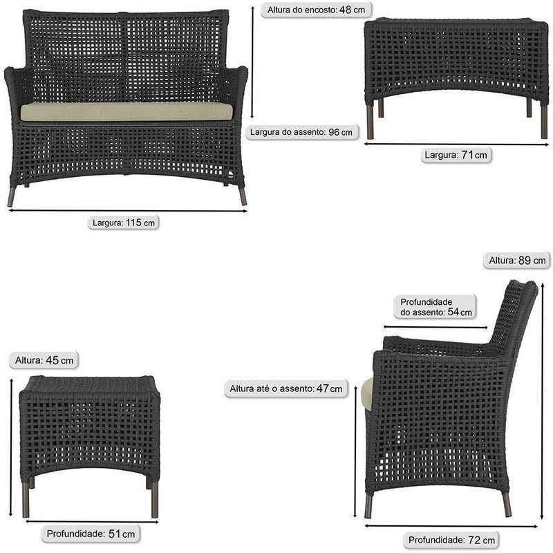 2 Sofás E Mesa Igapó Alumínio Marrom Corda Náutica E7 Trama Preto