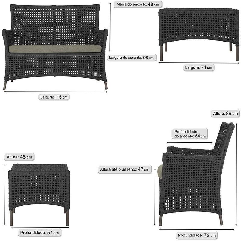 2 Sofás E Mesa Igapó Alumínio Marrom Corda Náutica E8 Trama Preto