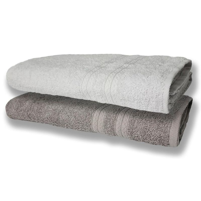 2 Toalhas Super Felpudas Grande E Grossa Algodão 80x150 Itália Soft Beka - Branco/cinza