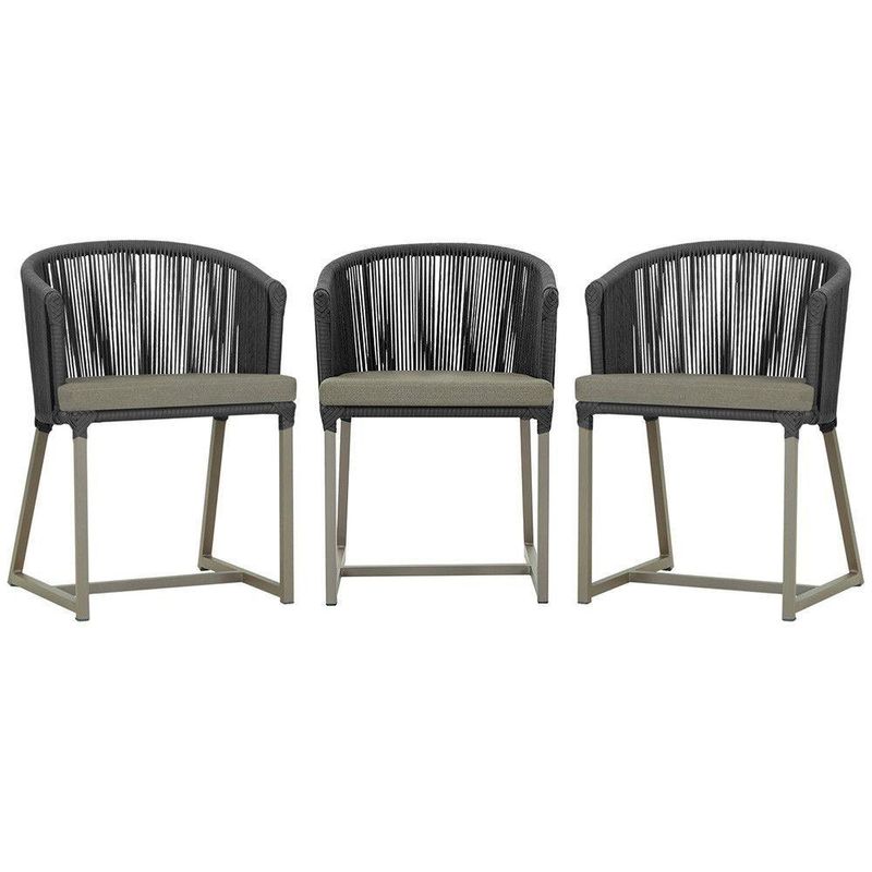 3 Cadeiras De Jantar Noronha Fendi Corda Náutica E8 Trama Preto
