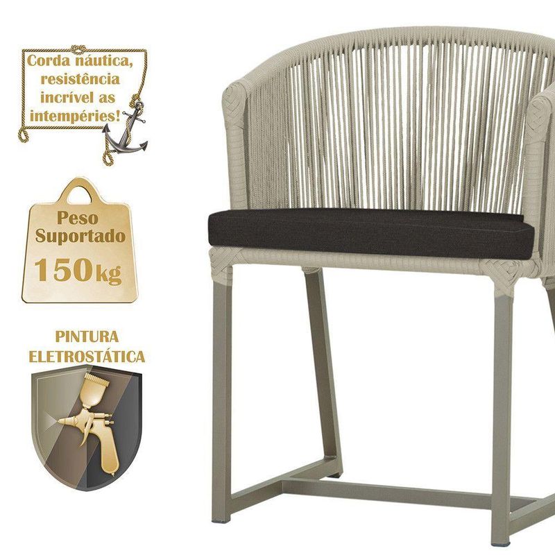 Descubra a Elegancia e Durabilidade da Cadeira Noronha. Combinando estilo e resistencia, esta cadeira traz o melhor do design contemporaneo em aluminio com micro pintura e acabamento em corda nautica. O estofado impermeavel completa o conforto e a funcionalidade, tornando-a ideal para ambientes externos e internos. Qualidade e elegancia que transformam qualquer espaco. Adicione um toque de sofisticacao e conforto ao seu espaco com a cadeira Noronha.