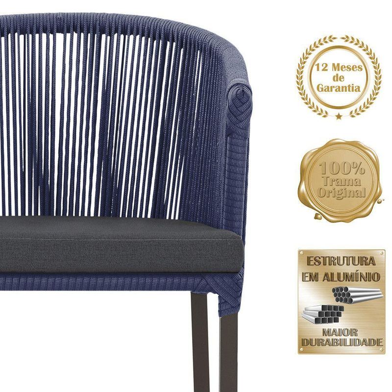 Descubra a Elegancia e Durabilidade da Cadeira Noronha. Combinando estilo e resistencia, esta cadeira traz o melhor do design contemporaneo em aluminio com micro pintura e acabamento em corda nautica. O estofado impermeavel completa o conforto e a funcionalidade, tornando-a ideal para ambientes externos e internos. Qualidade e elegancia que transformam qualquer espaco. Adicione um toque de sofisticacao e conforto ao seu espaco com a cadeira Noronha.