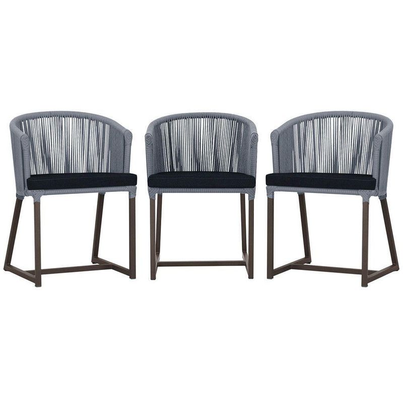 3 Cadeiras De Jantar Noronha Marrom Corda Náutica E12 Trama Prata