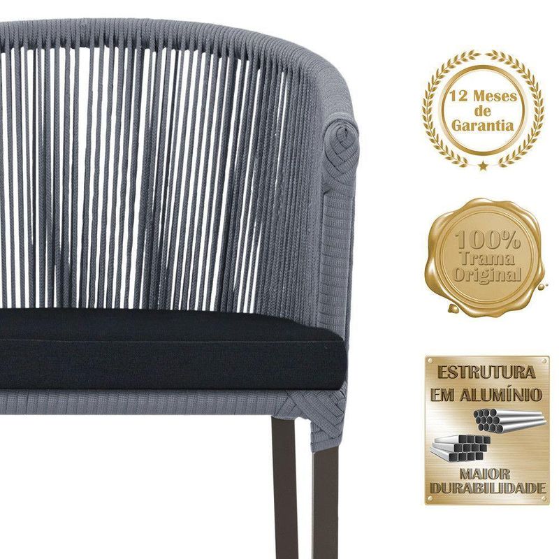 Descubra a Elegancia e Durabilidade da Cadeira Noronha. Combinando estilo e resistencia, esta cadeira traz o melhor do design contemporaneo em aluminio com micro pintura e acabamento em corda nautica. O estofado impermeavel completa o conforto e a funcionalidade, tornando-a ideal para ambientes externos e internos. Qualidade e elegancia que transformam qualquer espaco. Adicione um toque de sofisticacao e conforto ao seu espaco com a cadeira Noronha.