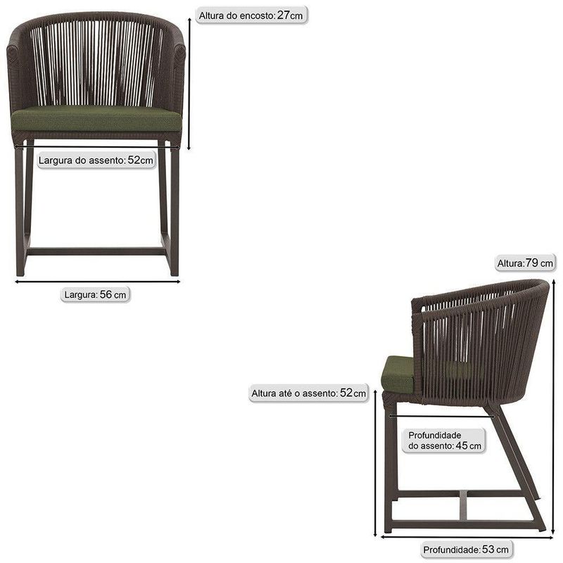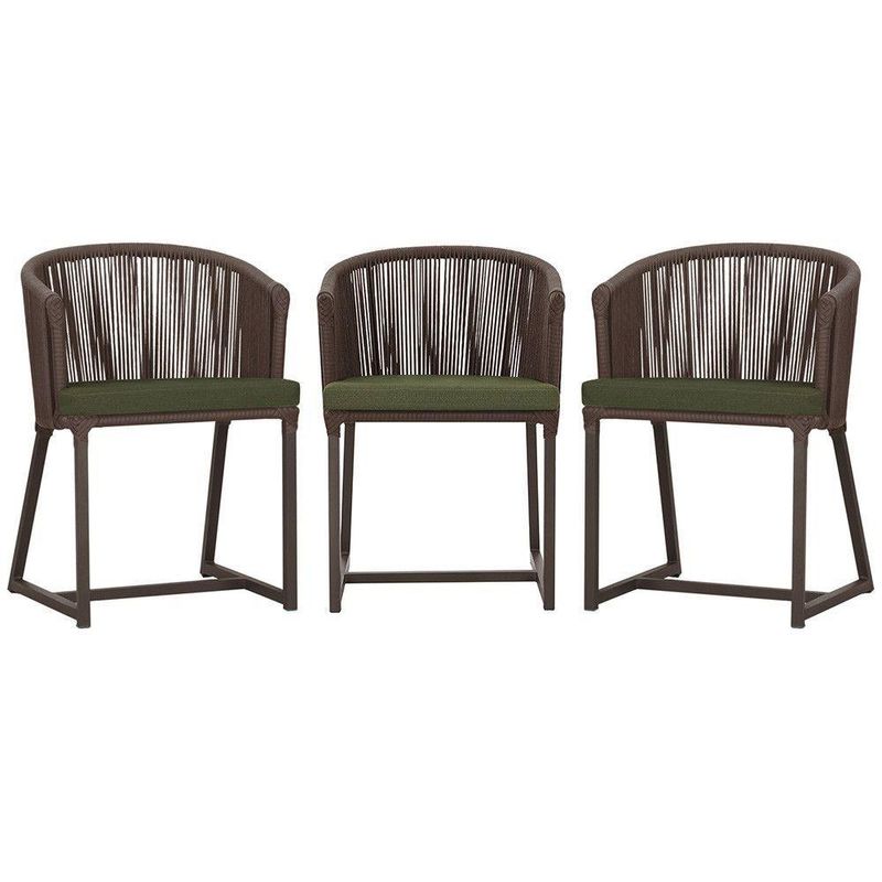 3 Cadeiras De Jantar Noronha Marrom Corda Náutica E13 Trama Marrom