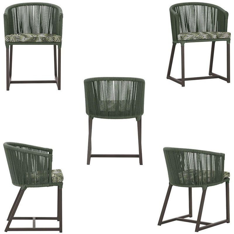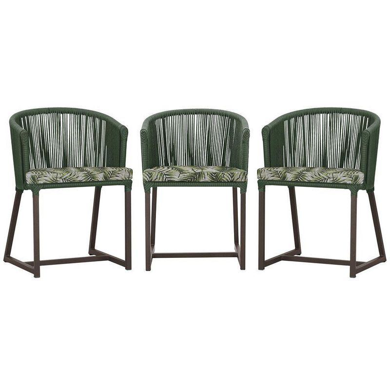 3 Cadeiras De Jantar Noronha Marrom Corda Náutica E5 Trama Verde