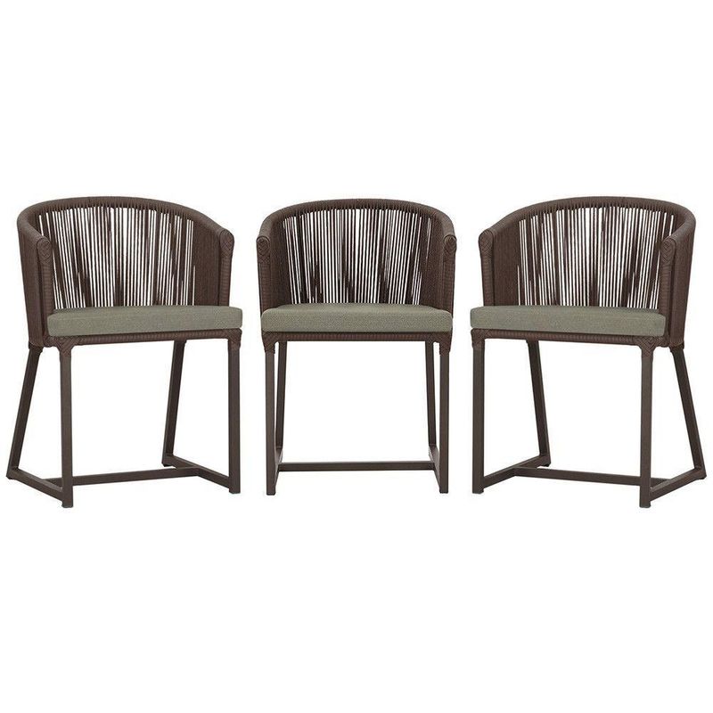 3 Cadeiras De Jantar Noronha Marrom Corda Náutica E8 Trama Marrom