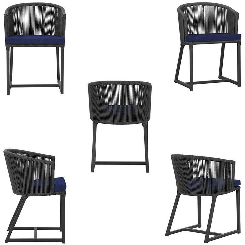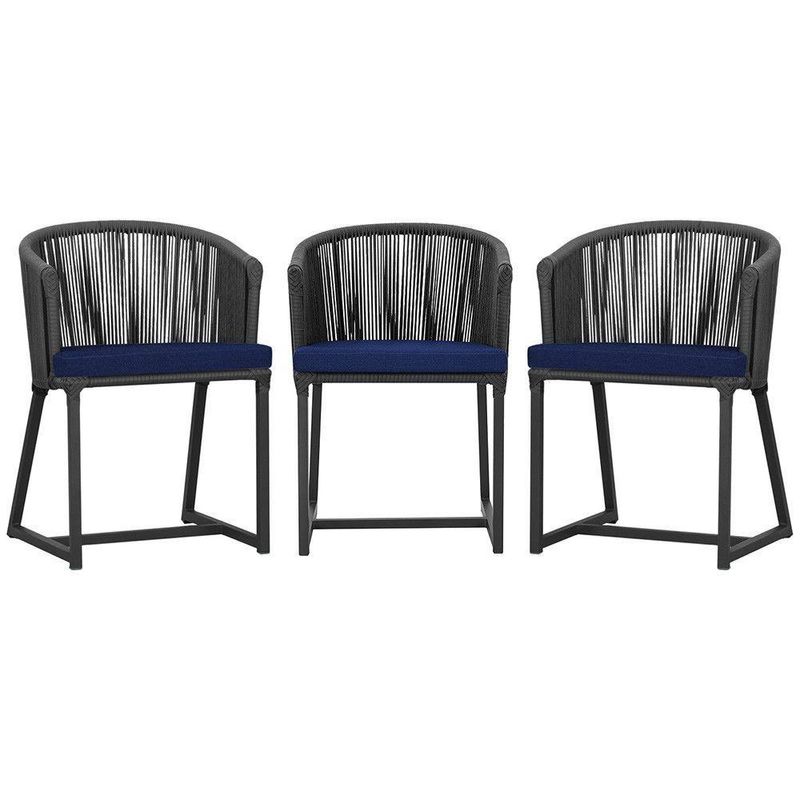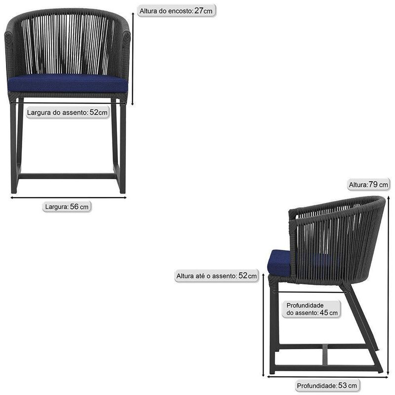 3 Cadeiras De Jantar Noronha Preta Corda Náutica E10 Trama Preto