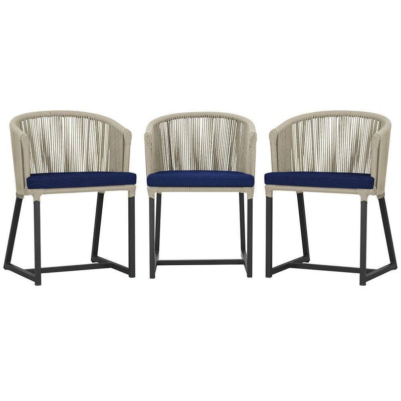 3 Cadeiras De Jantar Noronha Preta Corda Náutica E10 Trama Rami