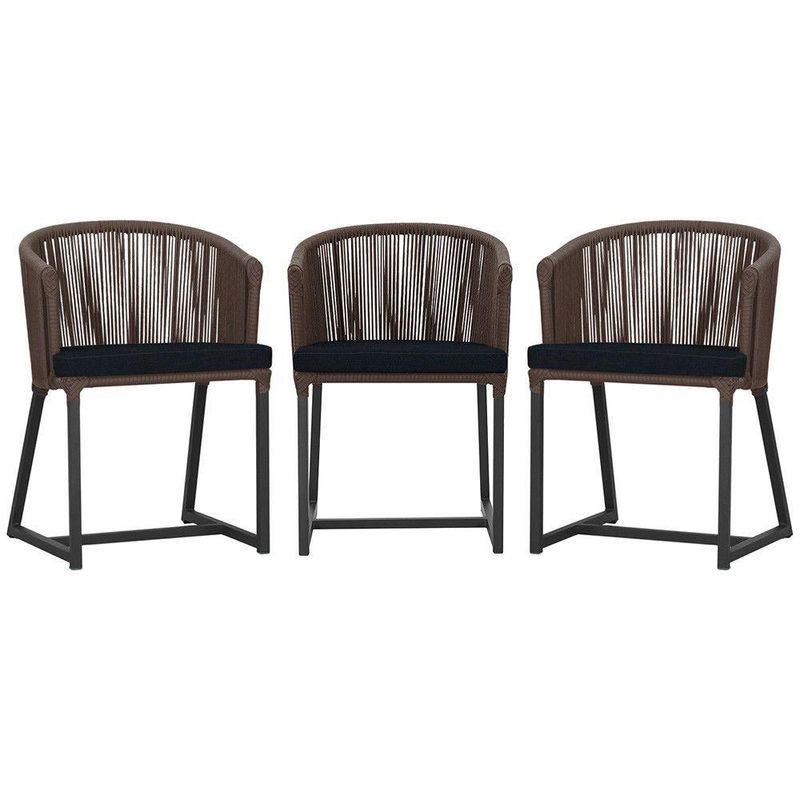 3 Cadeiras De Jantar Noronha Preta Corda Náutica E12 Trama Marrom