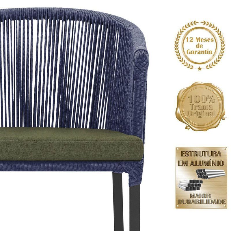3 Cadeiras De Jantar Noronha Preta Corda Náutica E13 Trama Azul