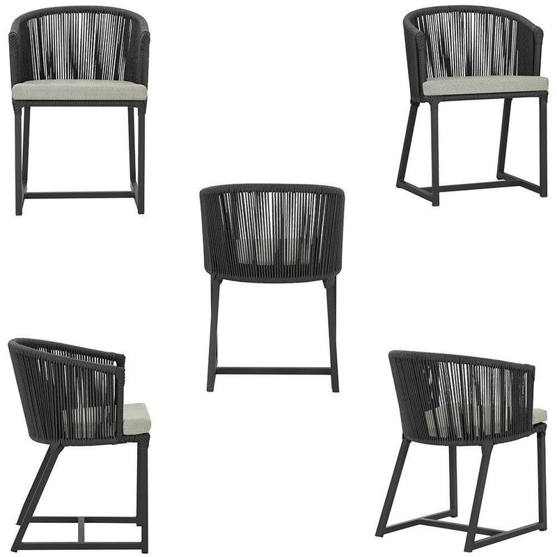 3 Cadeiras De Jantar Noronha Preta Corda Náutica E3 Trama Preto