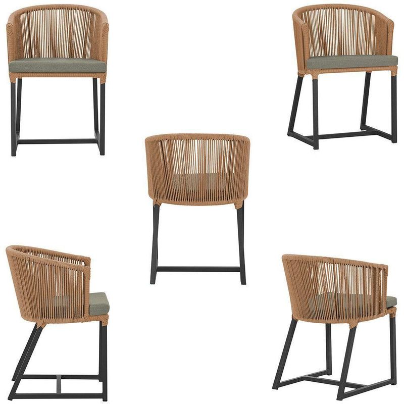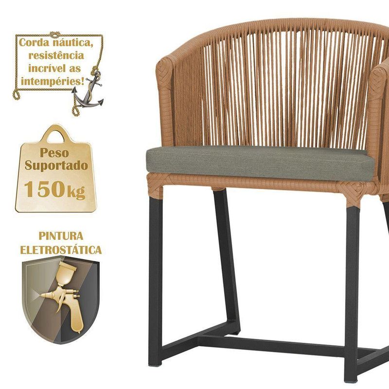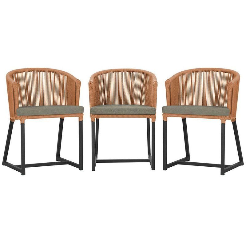 3 Cadeiras De Jantar Noronha Preta Corda Náutica E8 Trama Terra Cota