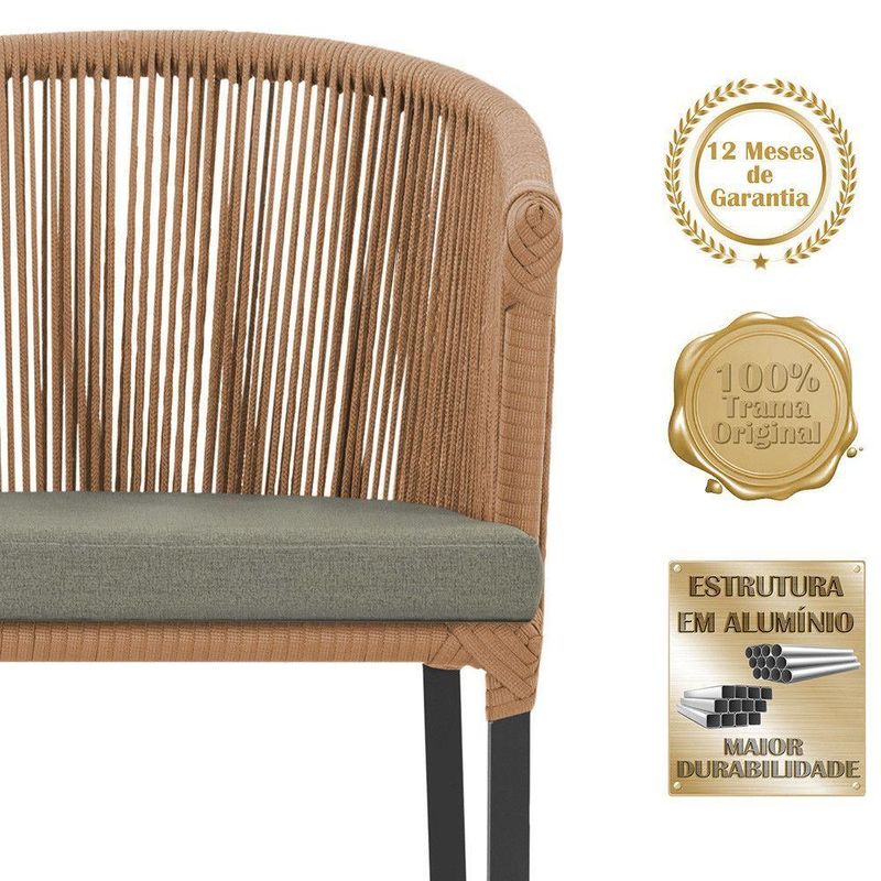 Descubra a Elegancia e Durabilidade da Cadeira Noronha. Combinando estilo e resistencia, esta cadeira traz o melhor do design contemporaneo em aluminio com micro pintura e acabamento em corda nautica. O estofado impermeavel completa o conforto e a funcionalidade, tornando-a ideal para ambientes externos e internos. Qualidade e elegancia que transformam qualquer espaco. Adicione um toque de sofisticacao e conforto ao seu espaco com a cadeira Noronha.