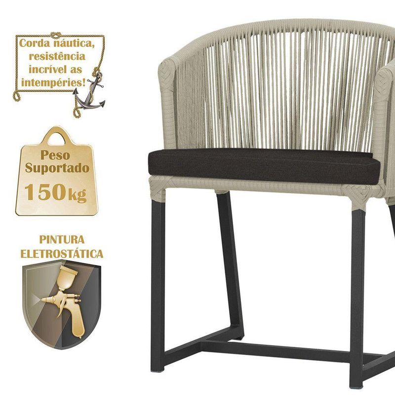 3 Cadeiras De Jantar Noronha Preta Corda Náutica E9 Trama Rami
