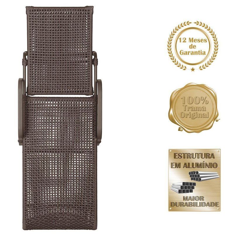 3 Espreguiçadeiras Reclinavel Catar Marrom Corda Nautica Marrom