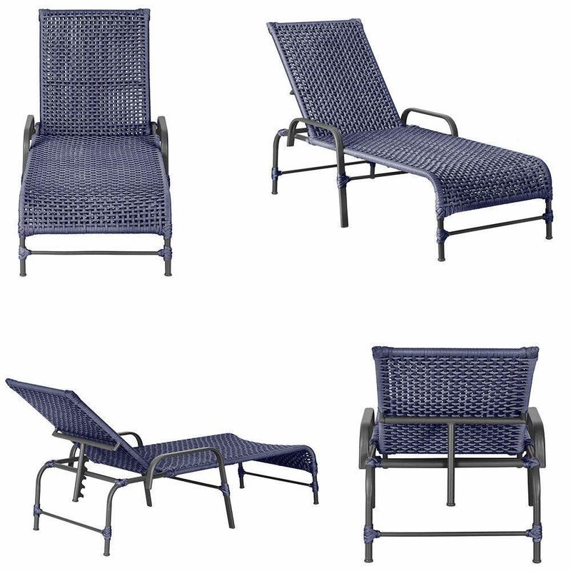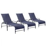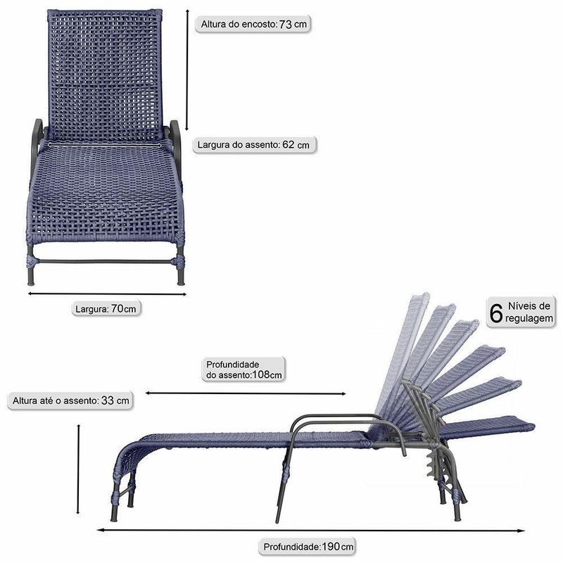 3 Espreguiçadeiras Reclinavel Catar Preto Corda Nautica Azul