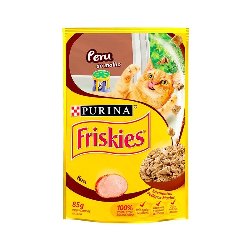 Peru,frango,fígado suíno,miúdos de suínos,glúten de trigo,amido de milho modificado,farelo de soja,concentrado proteico de soja,fosfato bicálcio,cloreto de sódio(sal comum),cloreto de potássio,água,taurina,vitaminas(A,B1,B6,B12,D3,E,K3,niacina,biotina,ácido fólico,pantotenato de cálcio,cloreto de colina),minerais(sulfato de zincosulfato ferroso,sulfato de cobre,sulfato de manganês,iodato de potássio),palatabizante,corantes(vermellho 3 e dióxido de titânio)