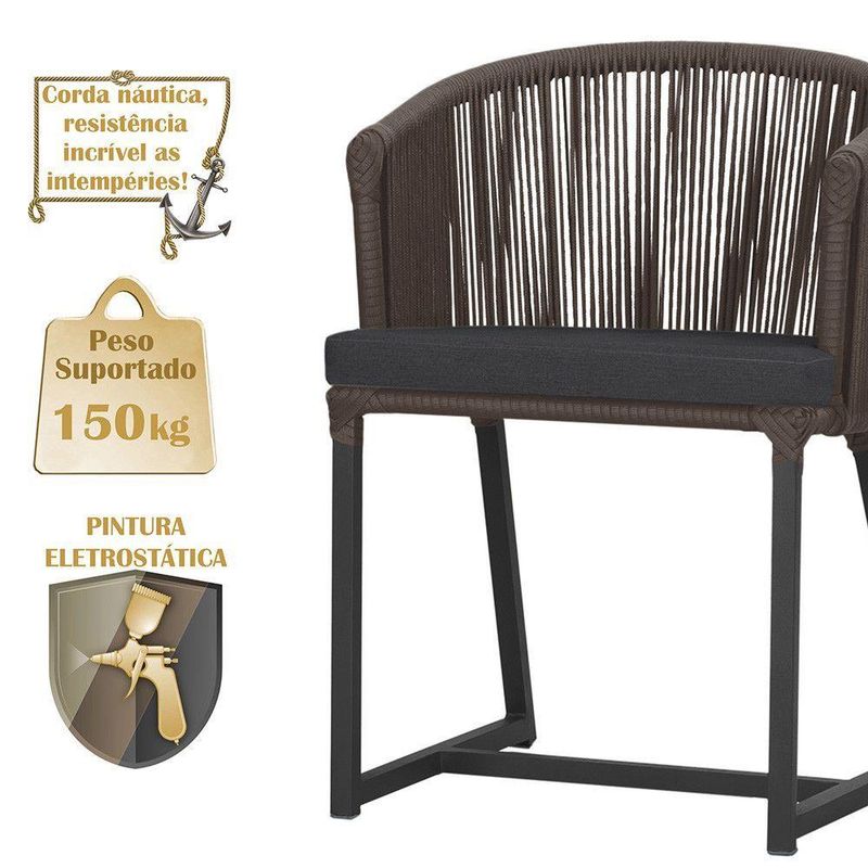 4 Cadeiras De Jantar Noronha Preta Corda Náutica E11 Trama Marrom