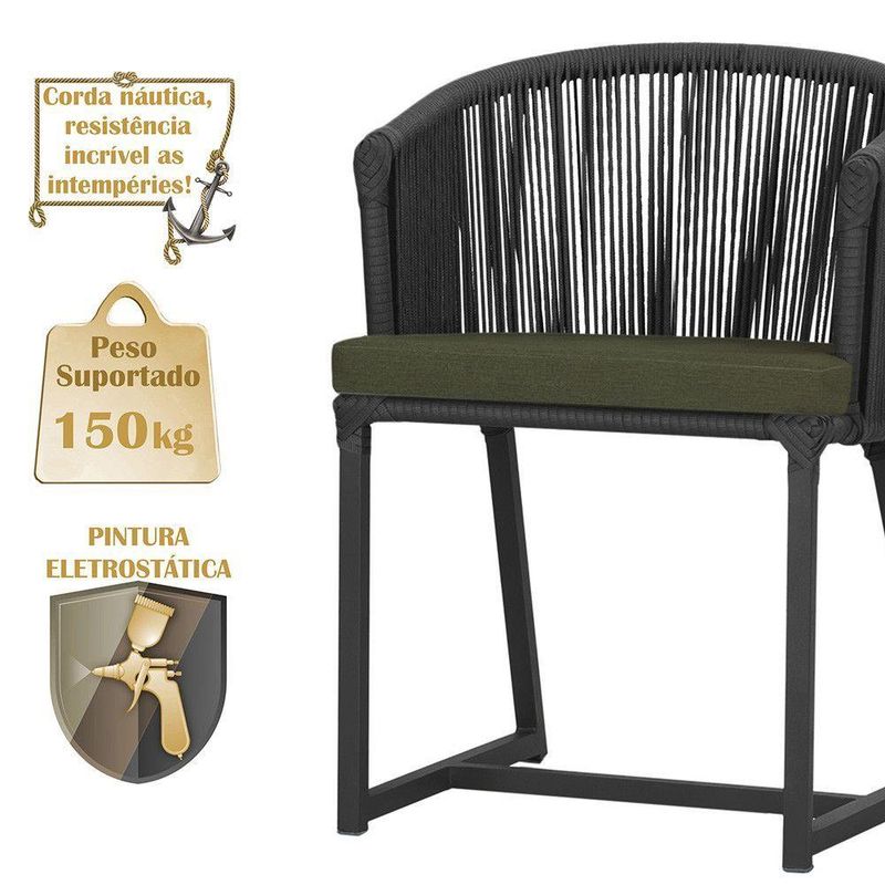 4 Cadeiras De Jantar Noronha Preta Corda Náutica E13 Trama Preto