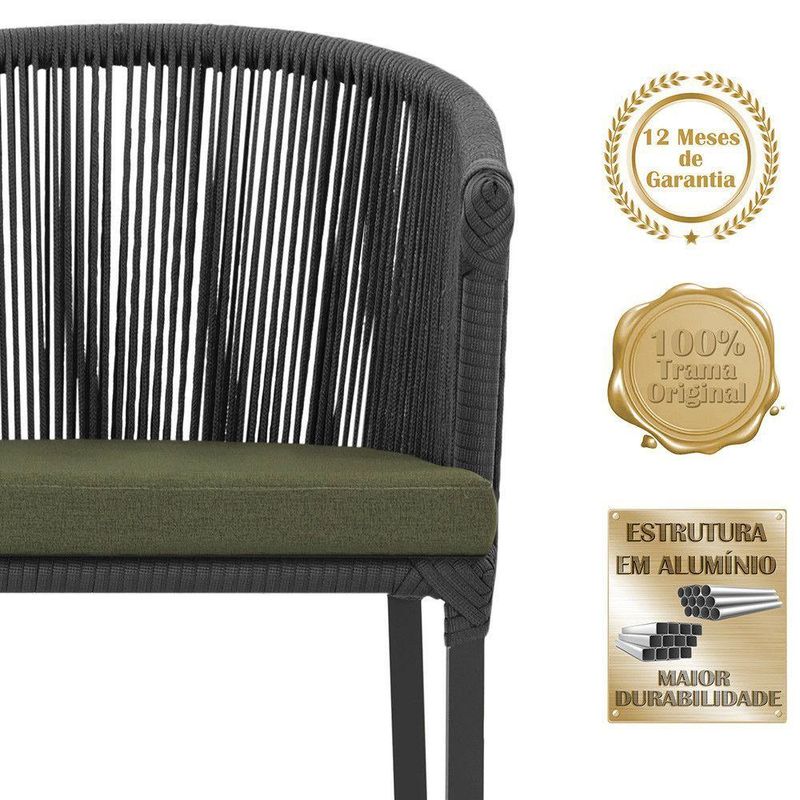 Descubra a Elegancia e Durabilidade da Cadeira Noronha. Combinando estilo e resistencia, esta cadeira traz o melhor do design contemporaneo em aluminio com micro pintura e acabamento em corda nautica. O estofado impermeavel completa o conforto e a funcionalidade, tornando-a ideal para ambientes externos e internos. Qualidade e elegancia que transformam qualquer espaco. Adicione um toque de sofisticacao e conforto ao seu espaco com a cadeira Noronha.
