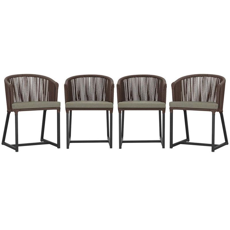 4 Cadeiras De Jantar Noronha Preta Corda Náutica E8 Trama Marrom