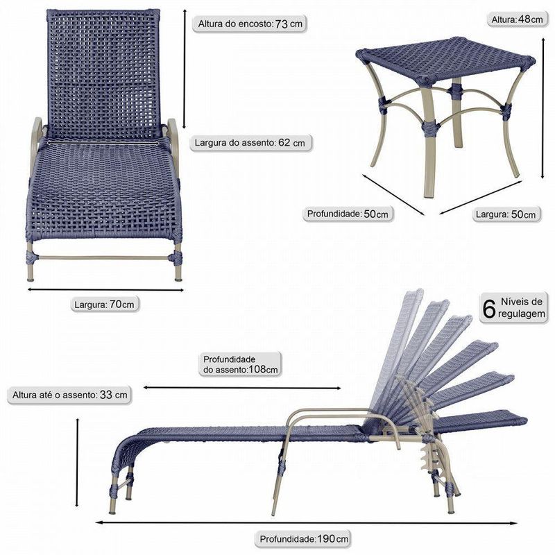 4 Espreguiçadeiras Catar 4 Mesas Garden Corda Náutica Trama Azul
