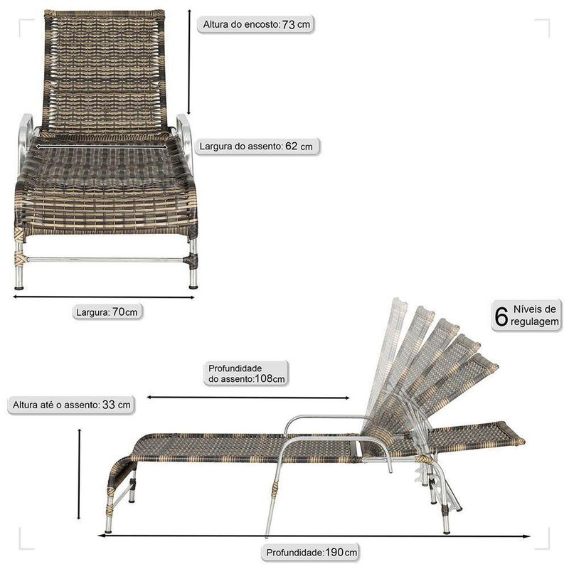 Produto conhecido como: Espreguicadeira reclinavel, Espreguicadeira em aluminio, Espreguicadeira com encosto ajustavel, Espreguicadeira para area externa, Espreguicadeira para piscina, Espreguicadeira resistente ao tempo, Espreguicadeira moderna, Espreguicadeira confortavel, Moveis para area externa, Moveis de aluminio para jardim, fibra sintetica para moveis, Espreguicadeira leve e duravel, Design sofisticado para areas externas, Decoracao para varanda e piscina, Espreguicadeira resistente ao sol e chuva