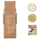 O encosto reclinavel permite ajuste perfeito para seu conforto, enquanto a corda nautica trancada proporciona um toque elegante e ergonomico.