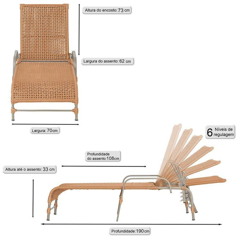Conteudo da Embalagem: 02 Espreguicadeiras Reclinavel Catar Corda Nautica Trama