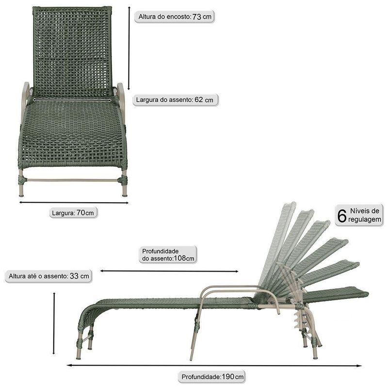 Conteudo da Embalagem: 02 Espreguicadeiras Reclinavel Catar Corda Nautica Trama
