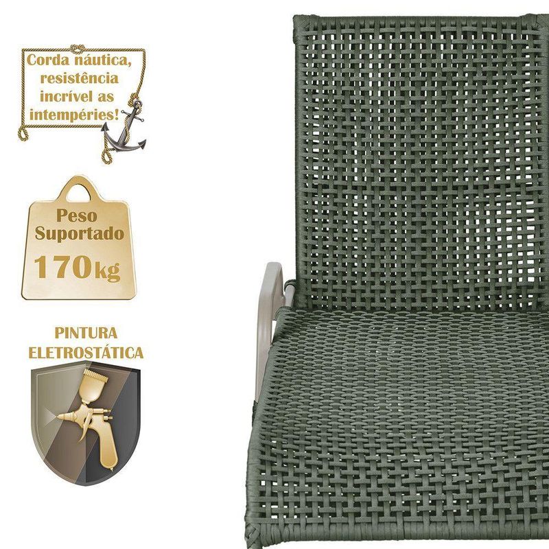 4 Espreguiçadeiras Reclinavel Catar Fendi Corda Nautica Verde