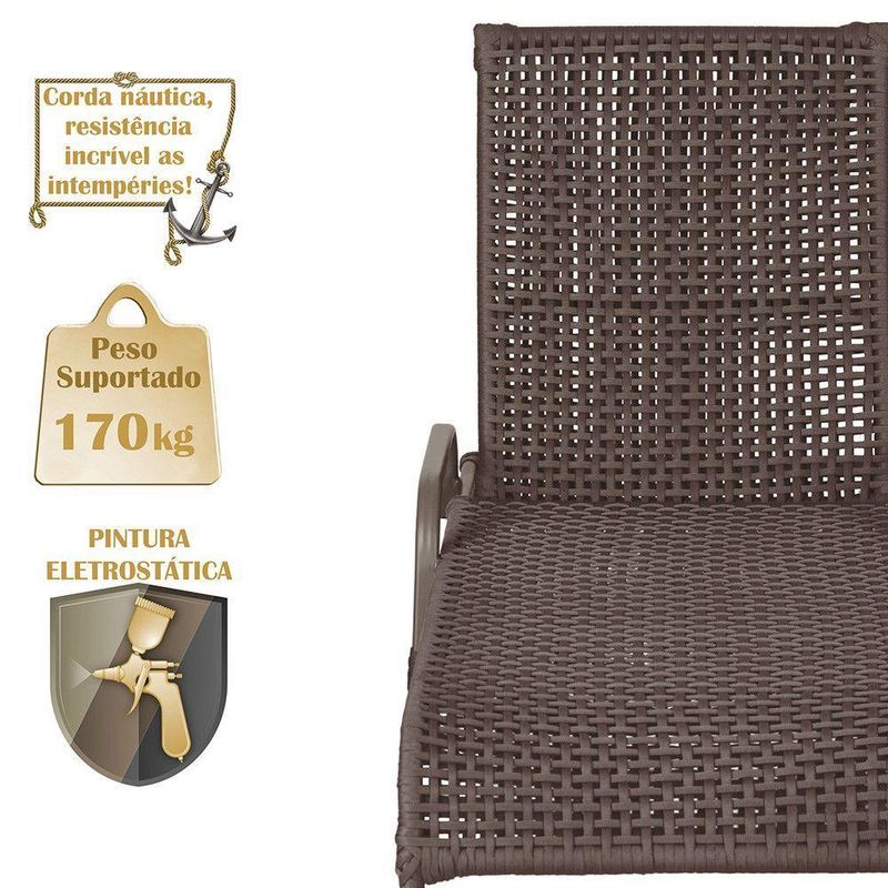 Conteudo da Embalagem: 04 Espreguicadeiras Reclinavel Catar Marrom Corda Nautica Trama