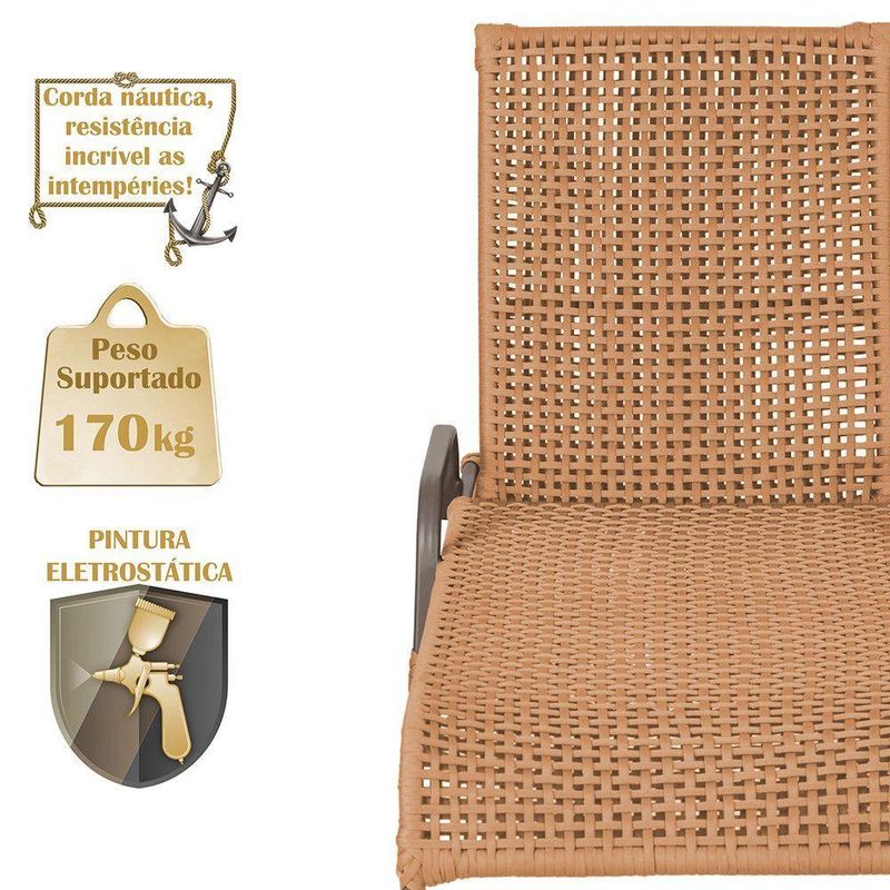 Conteudo da Embalagem: 04 Espreguicadeiras Reclinavel Catar Marrom Corda Nautica Trama